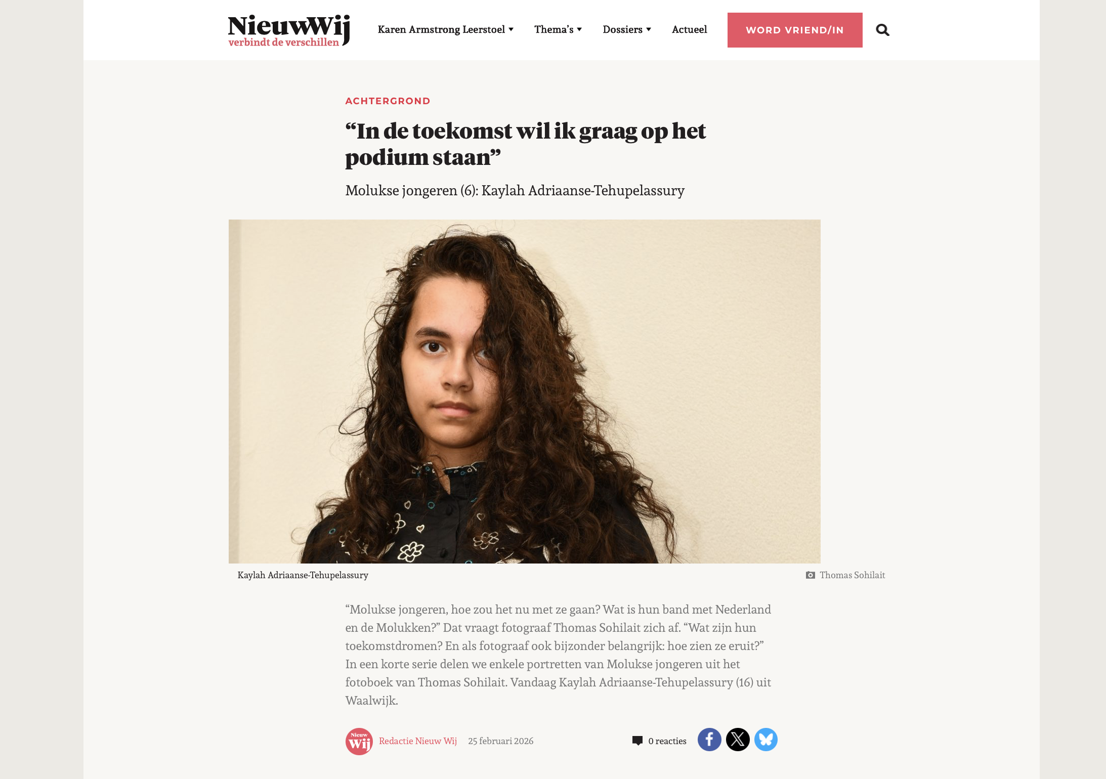 Kaylah Adriaanse-Tehupelassury groeide op in Tilburg en Waalwijk, met een hart dat zowel Nederlands als Moluks klopt. Toen Ambon in 2019 werd getroffen door een aardbeving, bleef ze niet stilzitten: ze zette een inzamelingsactie op, verkocht koek en snoep en haalde met hulp van social media en sponsors een mooi bedrag op voor weeskinderen op het eiland.